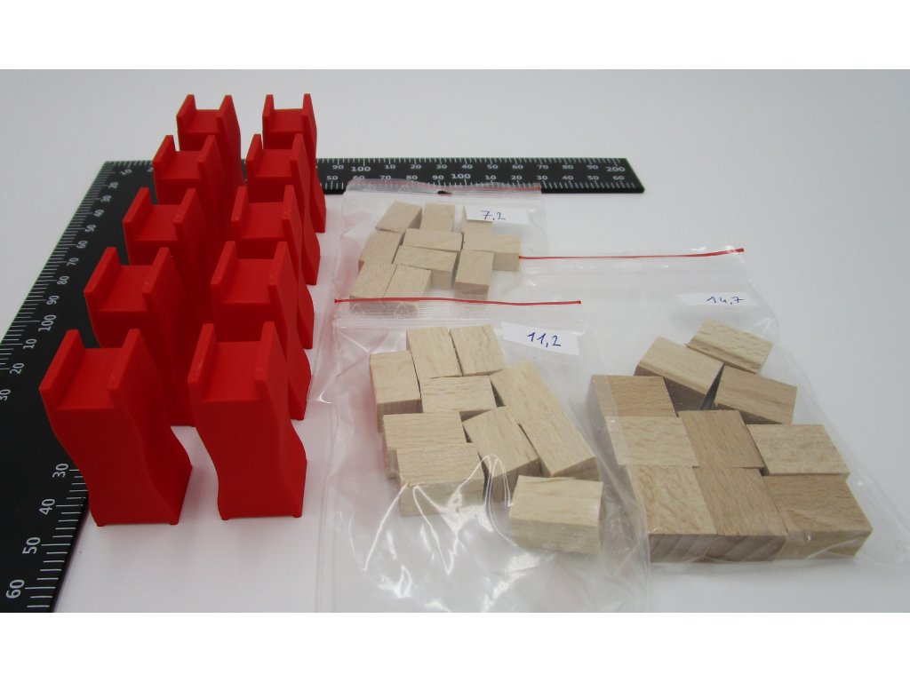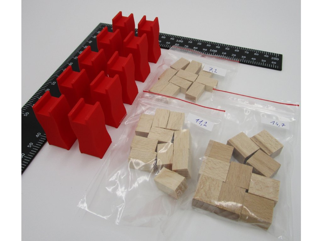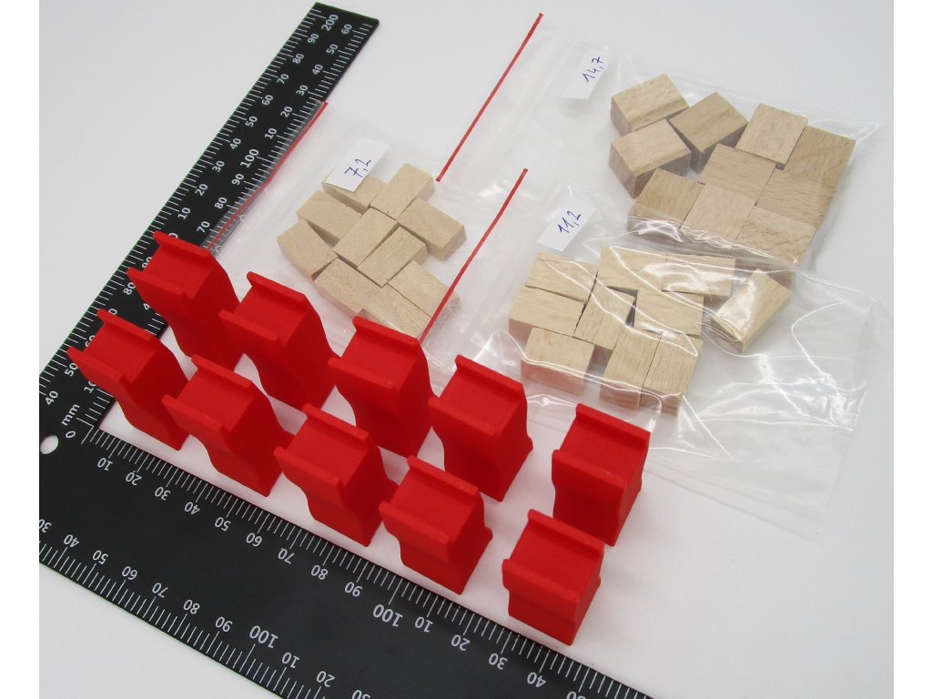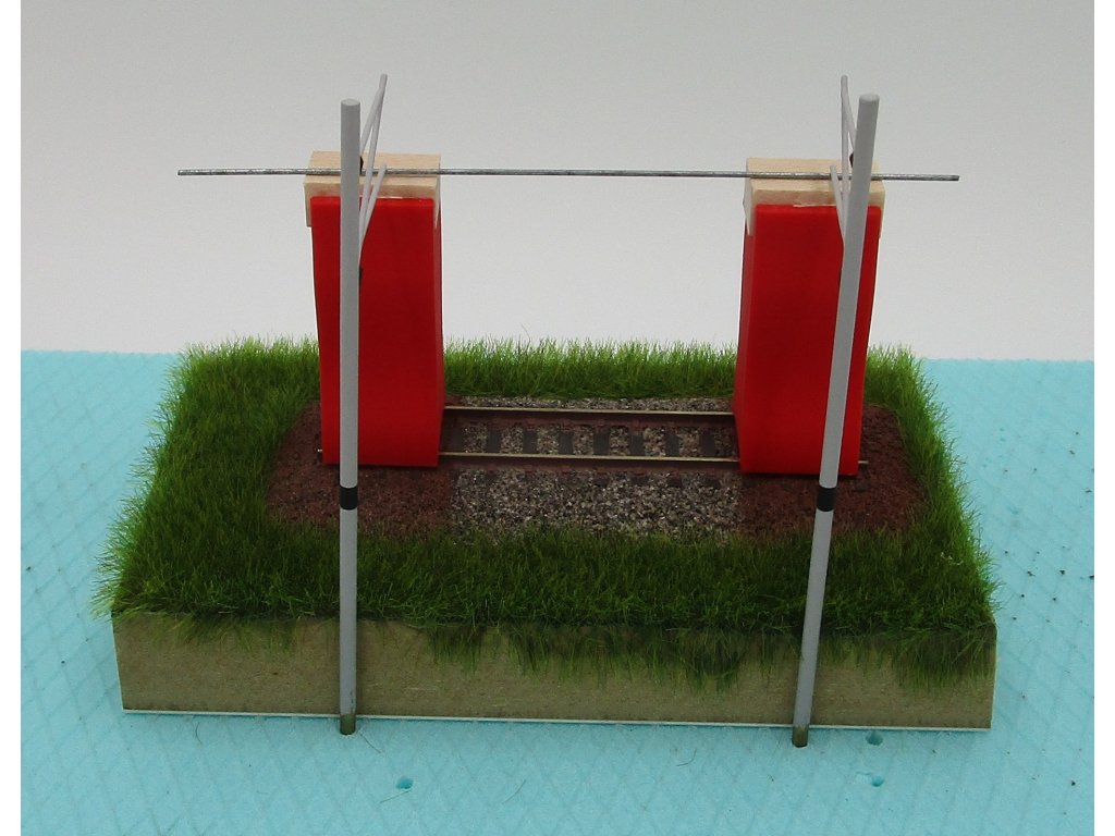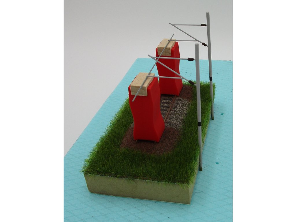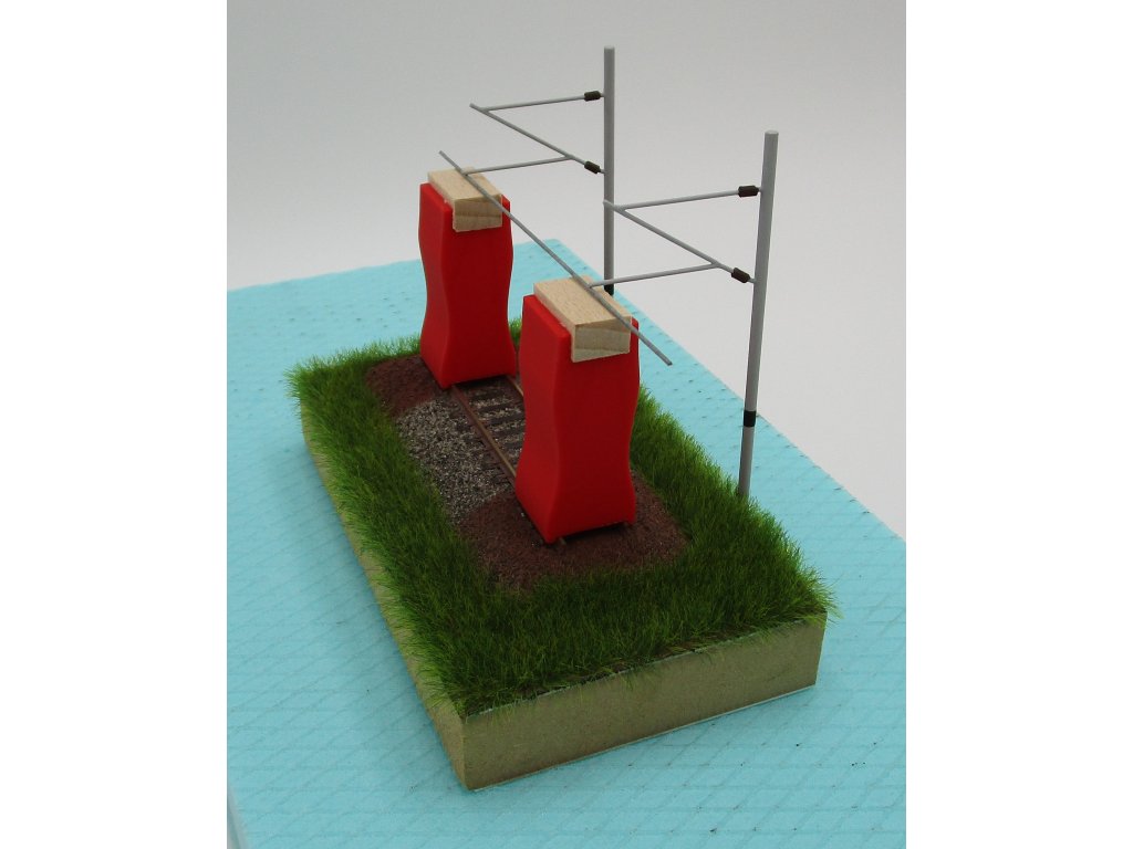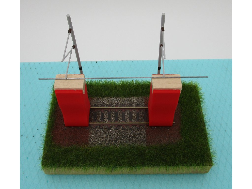 Výrobek je vyroben z bioplastu PLA, technologií 3D tisku. Pomůcku použijte při pokládání trolejového vodiče. Do stojánku nacvakněte odpovídající dřevěný hranol, který slouží pro vymezení výšek vodiče trolejového vedení, v balení se nachází vždy tři výšky hranolů pro každý plastový podstavec, hranol může být nutné lehce obrousit, aby jej bylo možné do podstavce zasunout, špalíčky jso lehce větší než otvor v podstavci, aby po zasunutí do podstavce pevně držely. Výšky hranolů odpovídají minimální, maximální a optimální výšce trolejového vodiče nad kolejí. Nacvakněte stojánek na kolej v místě, kde bude trolejový vodič připájen ke sloupu. Naohýbejte trolejový vodič a položte jej na stojánky, vodič musí ležet na dřevěné části. Nyní vložte sloupy do připravených otvorů a vyrovnejte je tak, aby byly kolmo ke koleji a aby se dotýkaly trolejového vodiče v místě, kde k němu budou připájeny. Nyní všechny spoje trolejového vodiče a sloupů připájejte a následně opatrně odstrňte z koleje.